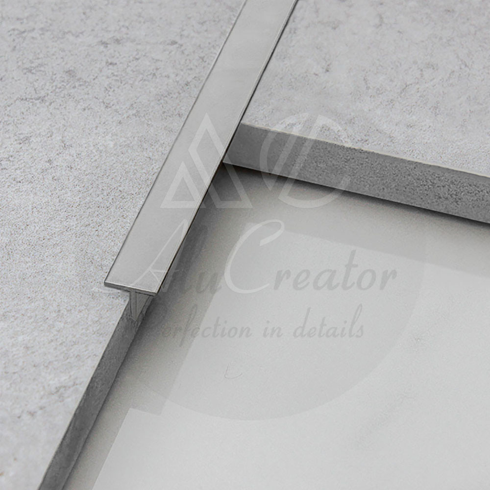 Анодований профіль для підлогових покриттів Т-подібний 18х9 мм. Незамінний при укладанні та комбінуванні підлогових покриттів – ламінат, паркет, керамічна плитка, наливні та мармурові підлоги. Застосовується для перекриття з'єднань та торців підлогових покриттів завтовшки до 18 мм. Т-подібний профіль для плитки і підлоги використовується для декору та зонування, надає вишуканості та довговічності інтер'єру. Анодоване покриття забезпечує надійний захист від корозії. Т-подібний профіль для підлоги може бути пофарбований у будь-який колір та декор на замовлення.